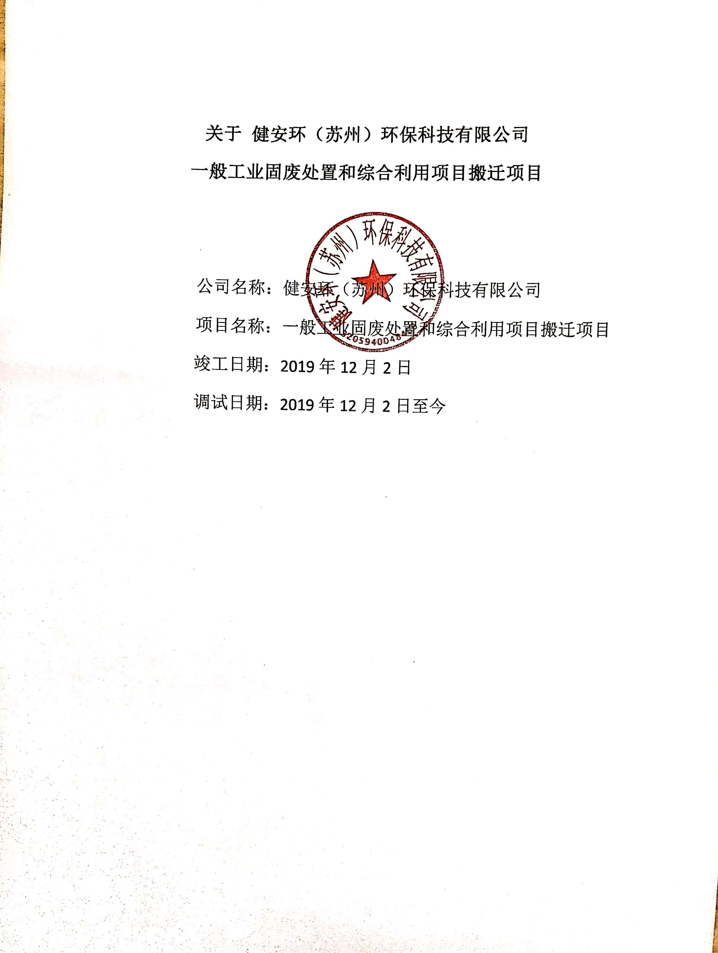 關(guān)于健安環(huán)(蘇州)環(huán)??萍加邢薰疽话愎I(yè)固廢處置和綜合利用項(xiàng)目搬遷項(xiàng)目